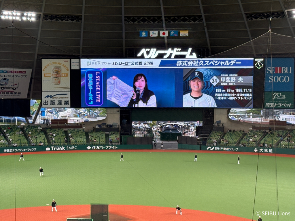 株式会社久(本社:東京都港区、代表取締役:工藤 暢久、以下「当社」)は、2026年4月23日(木)ベルーナドームで行われた埼玉西武ライオンズ対福岡ソフトバンクホークス戦において、ゲームスポンサーとして冠試合「株式会社久スペシャルデー」を開催いたしました。